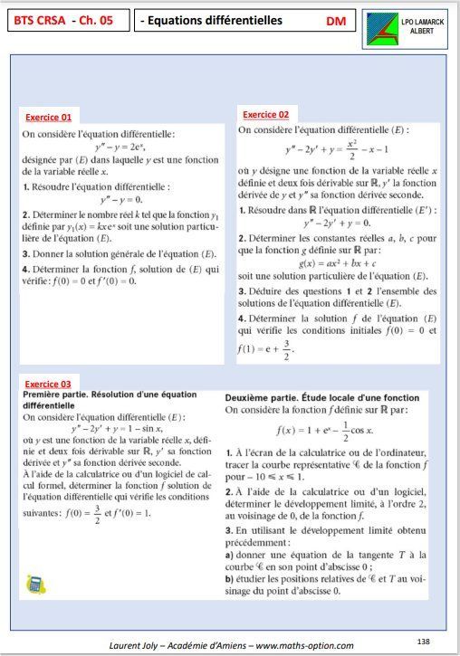 Savoir résoudre des équations différentielles du 1er ordre et du 2nd ordre. Interro de cours (exercices d'application du cours)