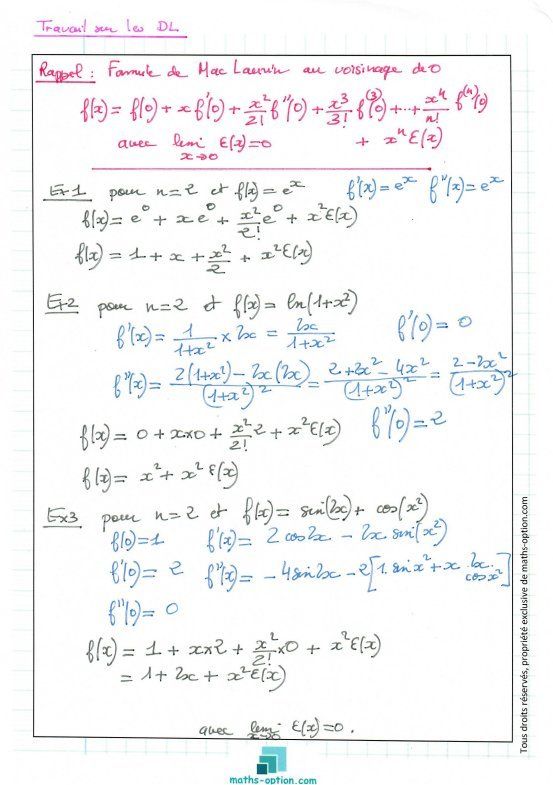 Apprendre la méthodologie de calcul d'un DL d'ordre n en 0, par la formule de Mac Laurin.
