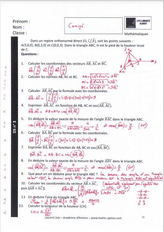 Terminer le TP Python n°6 (Produit vectoriel) ; A rendre : impression papier du script et d'une vue du résultat d'exécution (console). Tout support autorisé : Edupython, Thonny, émulateur web de la Numworks...