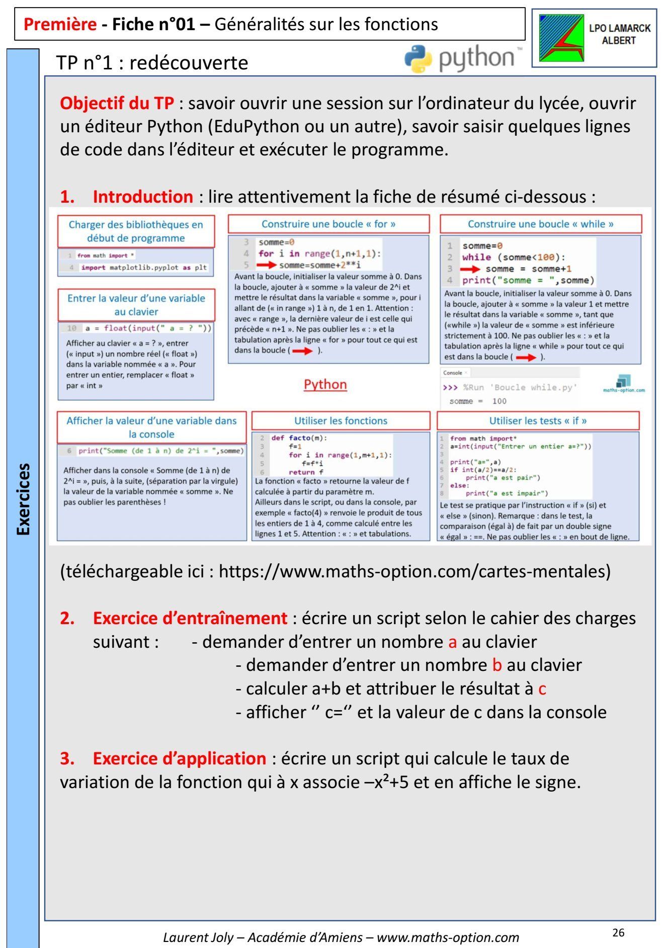 Fiche d'exercices ici :