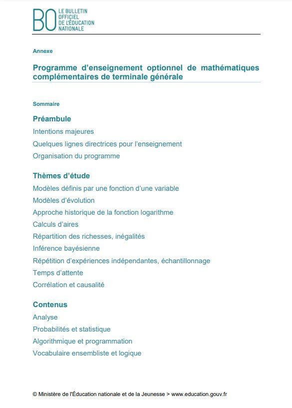 Le programme Terminales - Mathématiques Complémentaires